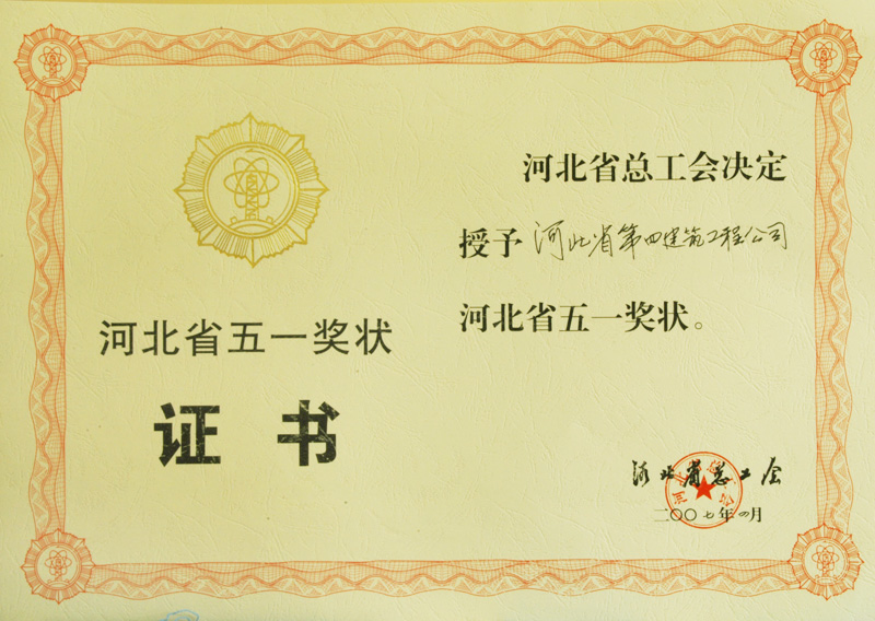 河北省五一奖状