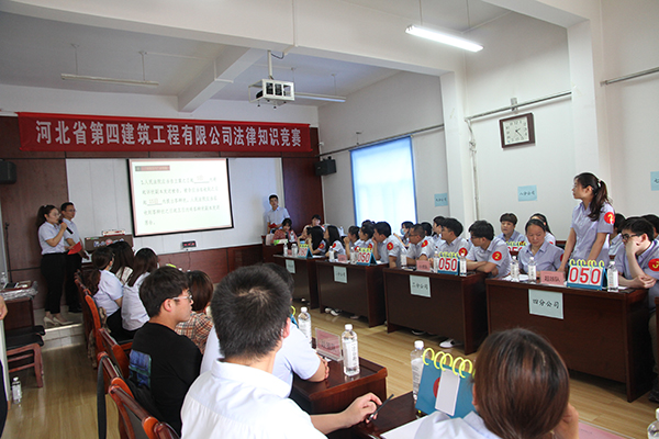 此次比赛为团队赛,机关、河北四建和各分公司派3人组成代表队参赛。比赛分三部分进行:第一轮“单枪匹马”必答题;第二轮“奋勇争先”抢答题;第三轮“知难而进”风险题。通过三轮的比拼,决出最后的优胜队伍。